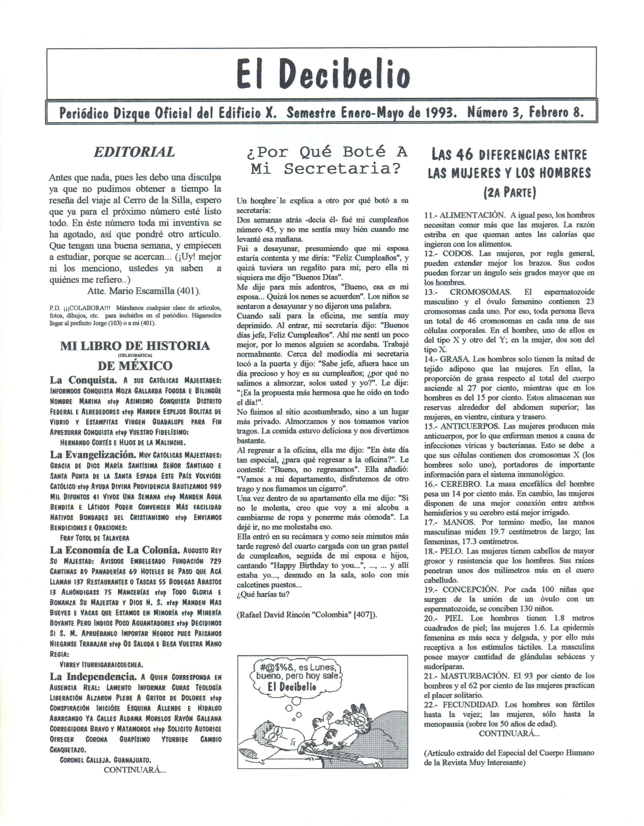 El tercer número, publicado una semana después, consta con artículos humorísticos sobre historia de México y un chiste-anécdota proporcionado por nuestro residente colombiano, Rafa Rincón.