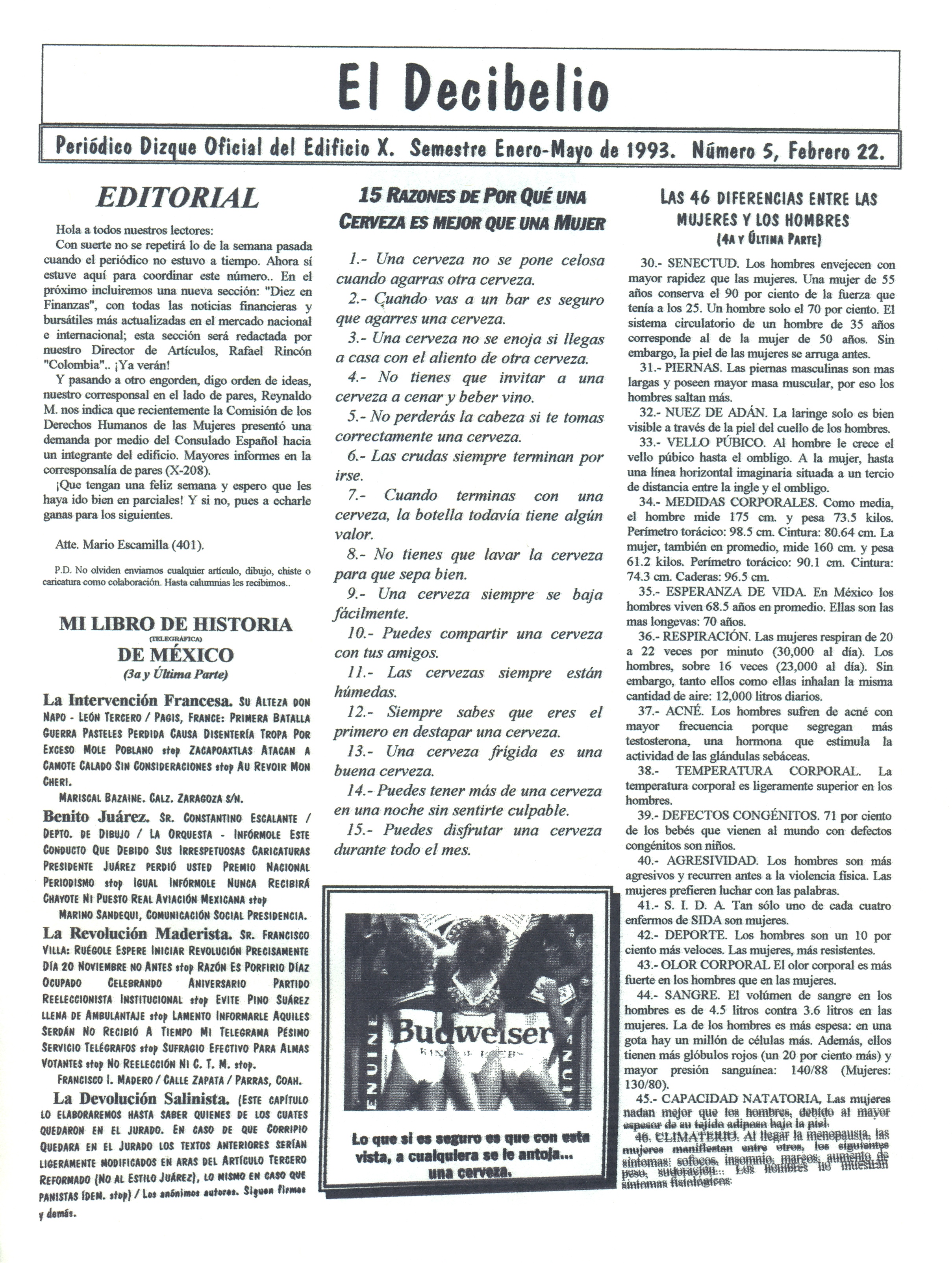 Regresando a la rutina, continúan los artículos de la jornada anterior así como un artículo que treinta años después sería muy difícil de justificar su inclusión. Eso si, la naturaleza chismosa del periódico comienza con las noticias internas.