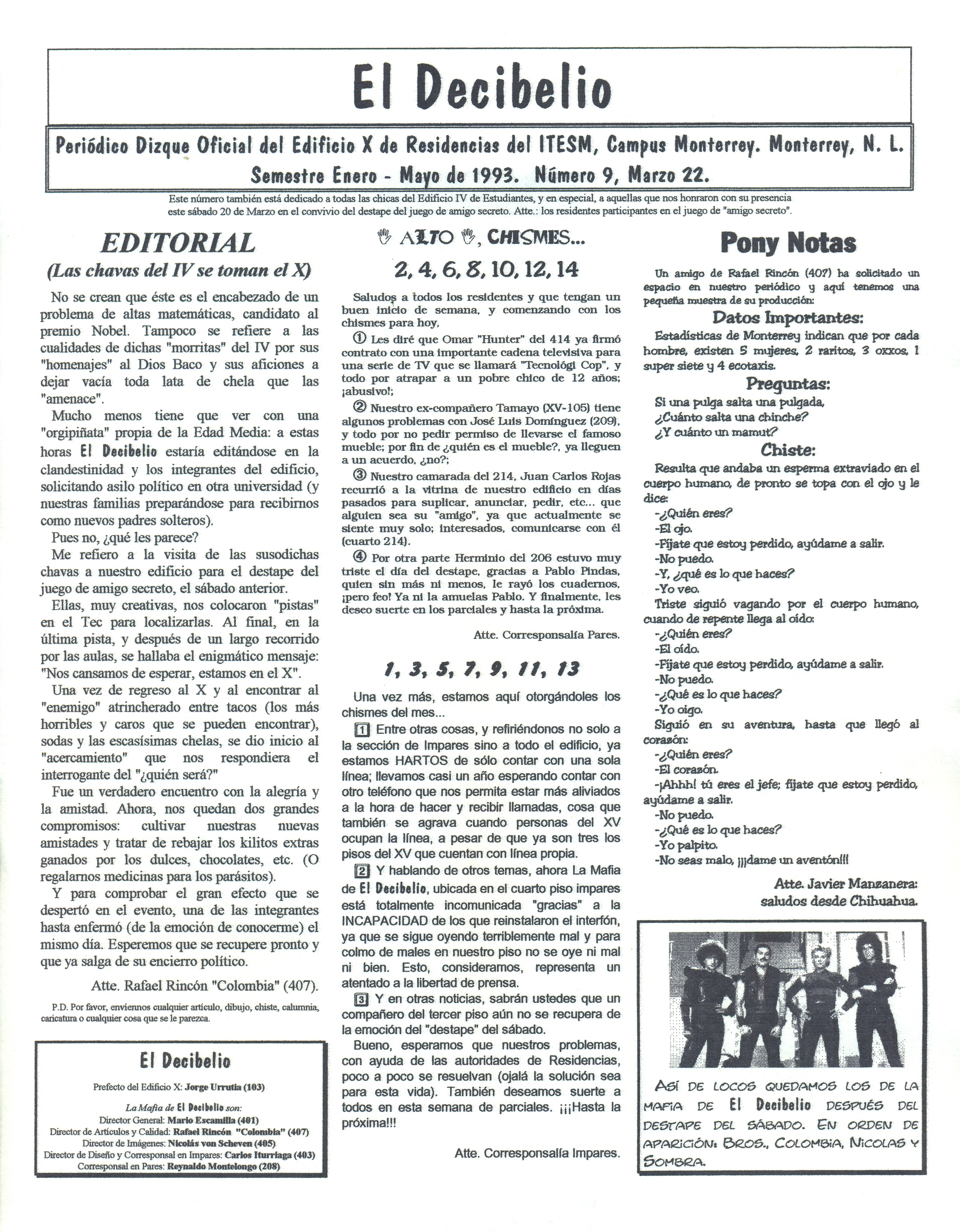 El Decibelio #9 En el noveno número, Rafa Rincón escribe la nota editorial, se cuentan más chismes y también chistes cortesía de Javier Manzanera, de Chihuahua. El DecibelioEspañol