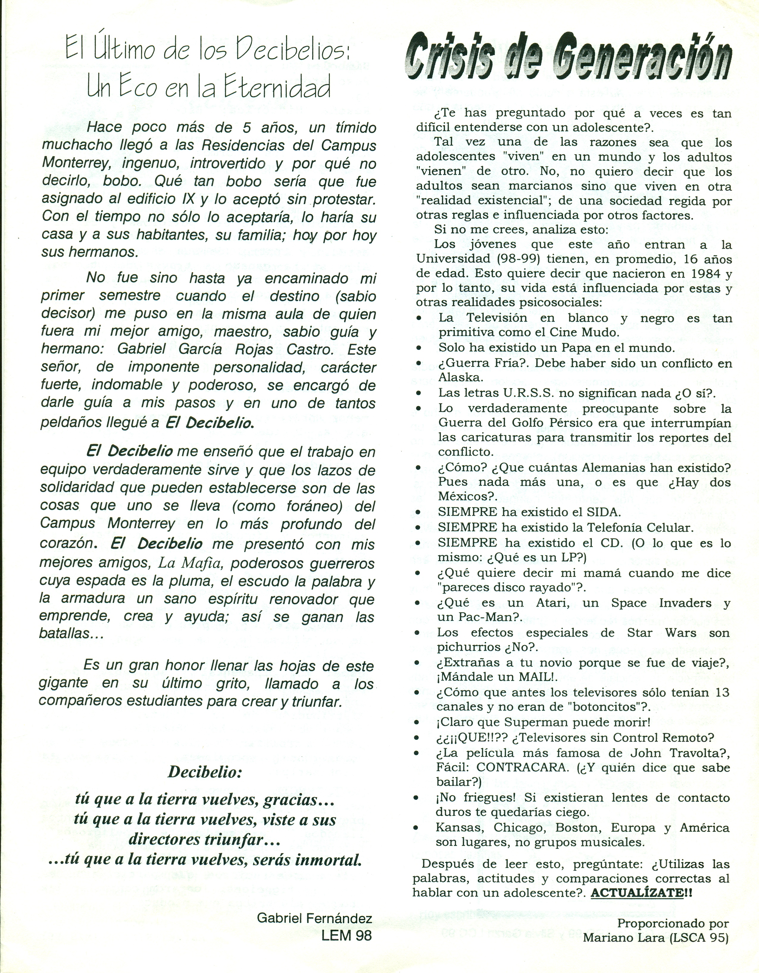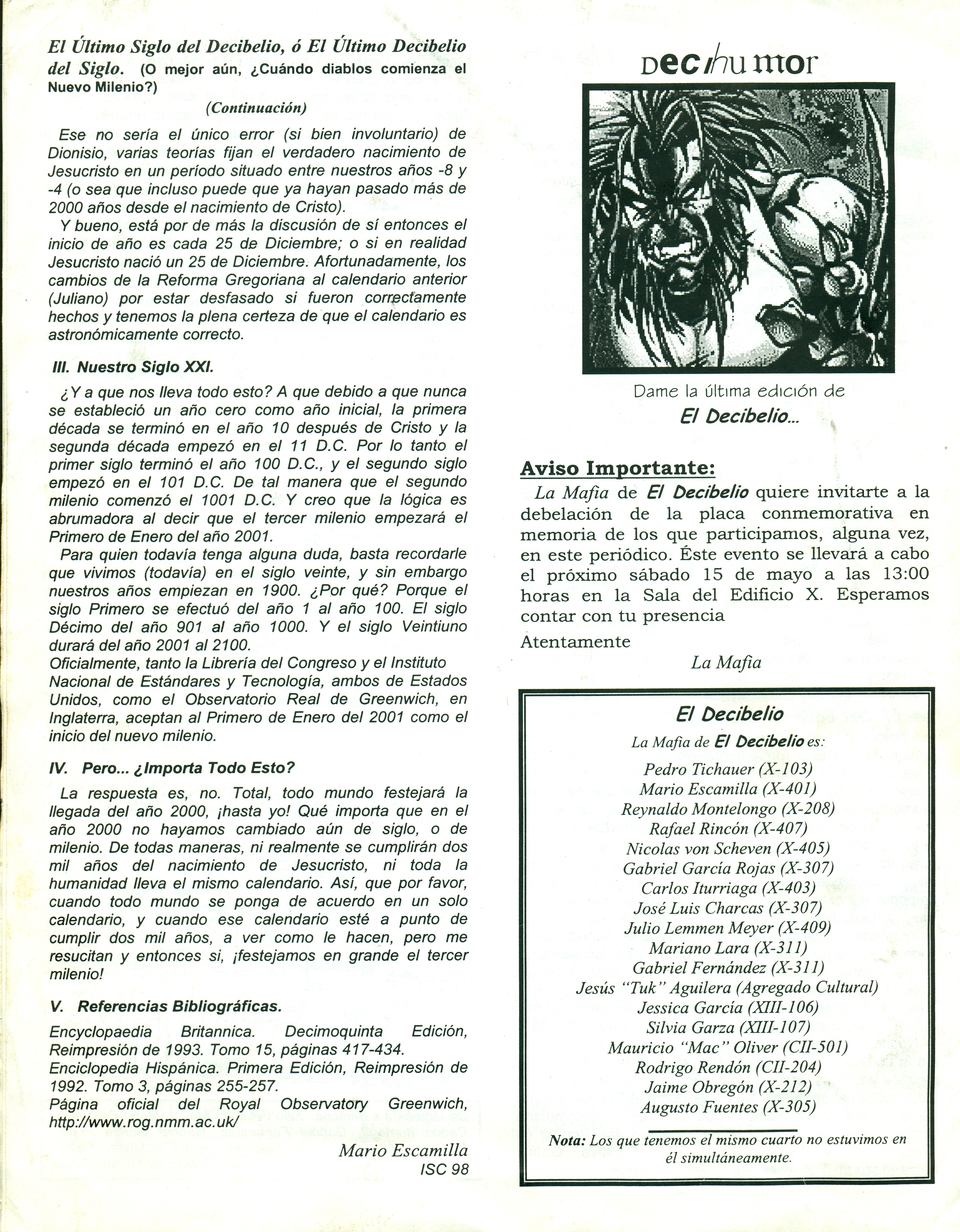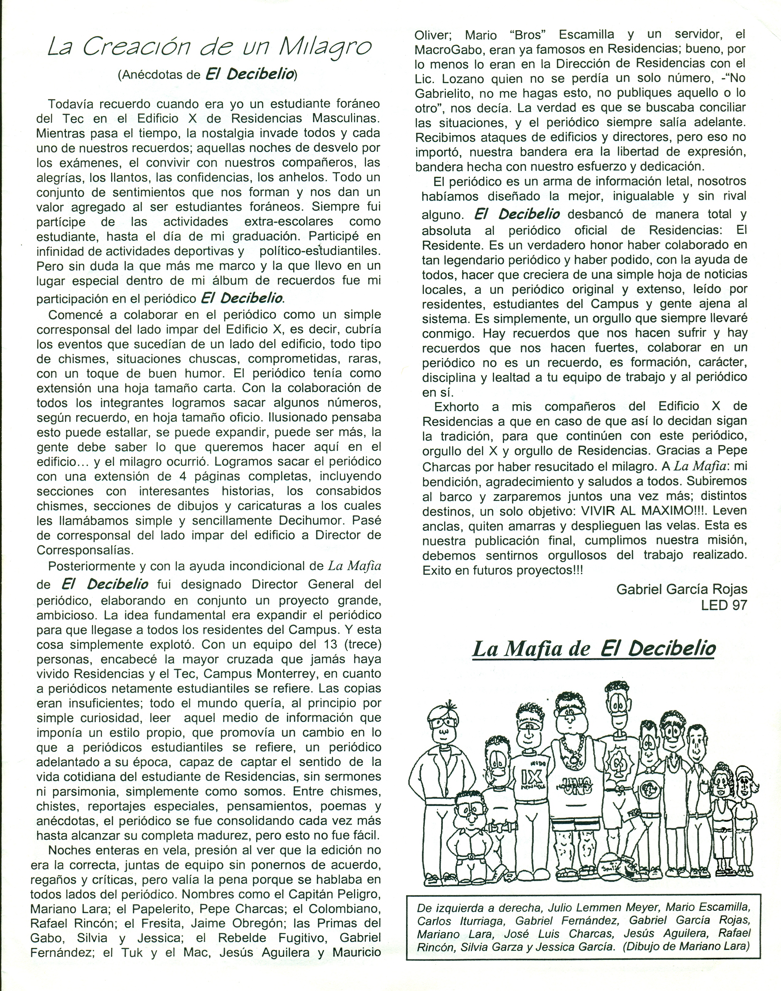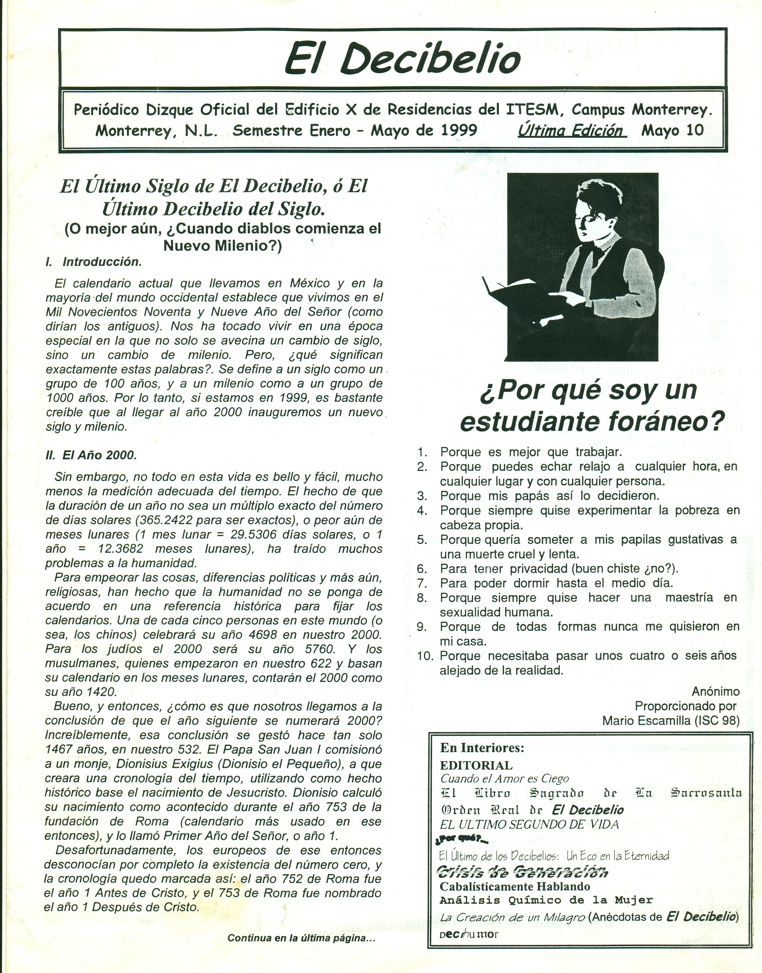 Habiendo abandonado el ITESM campus Monterrey para continuar mis estudios en el campus Estado de México, surgió la idea de conmemorar el periódico e incluso se develó una placa conmemorativa. José Luis Charcas tomó la rienda para editar este número especial que contó con participación de la mayor parte de los miembros.