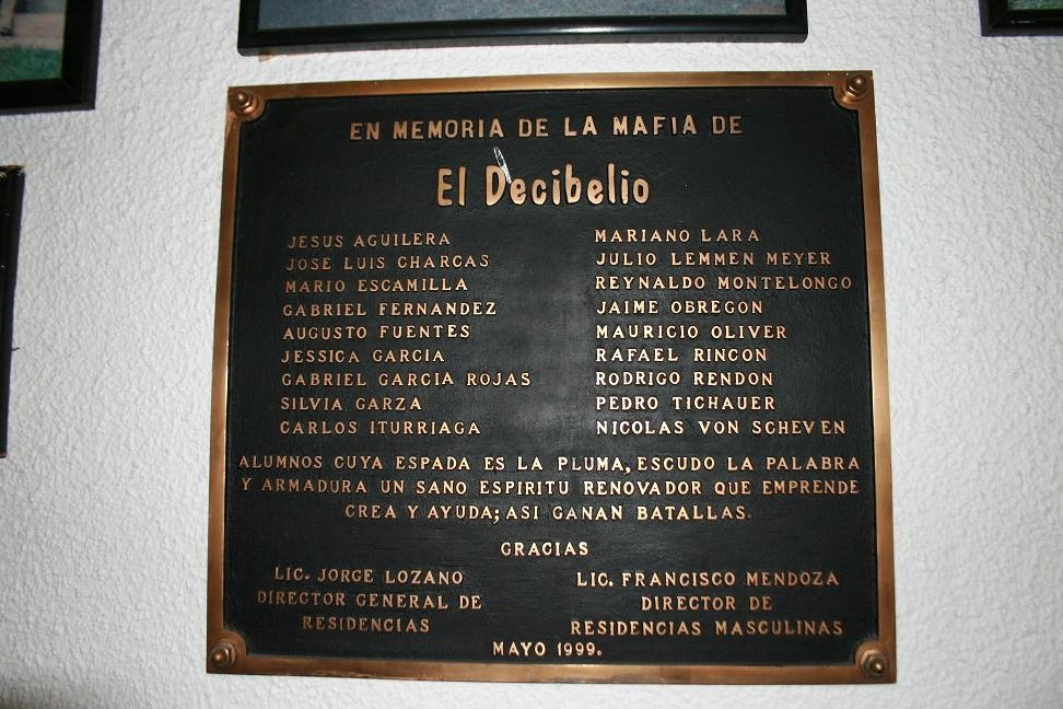 A continuación se muestra la placa conmemorativa de El Decibelio que se inauguró en mayo de 1999. Sin embargo, comentan los compañeros que ya fue retirada y se desconoce su paradero.